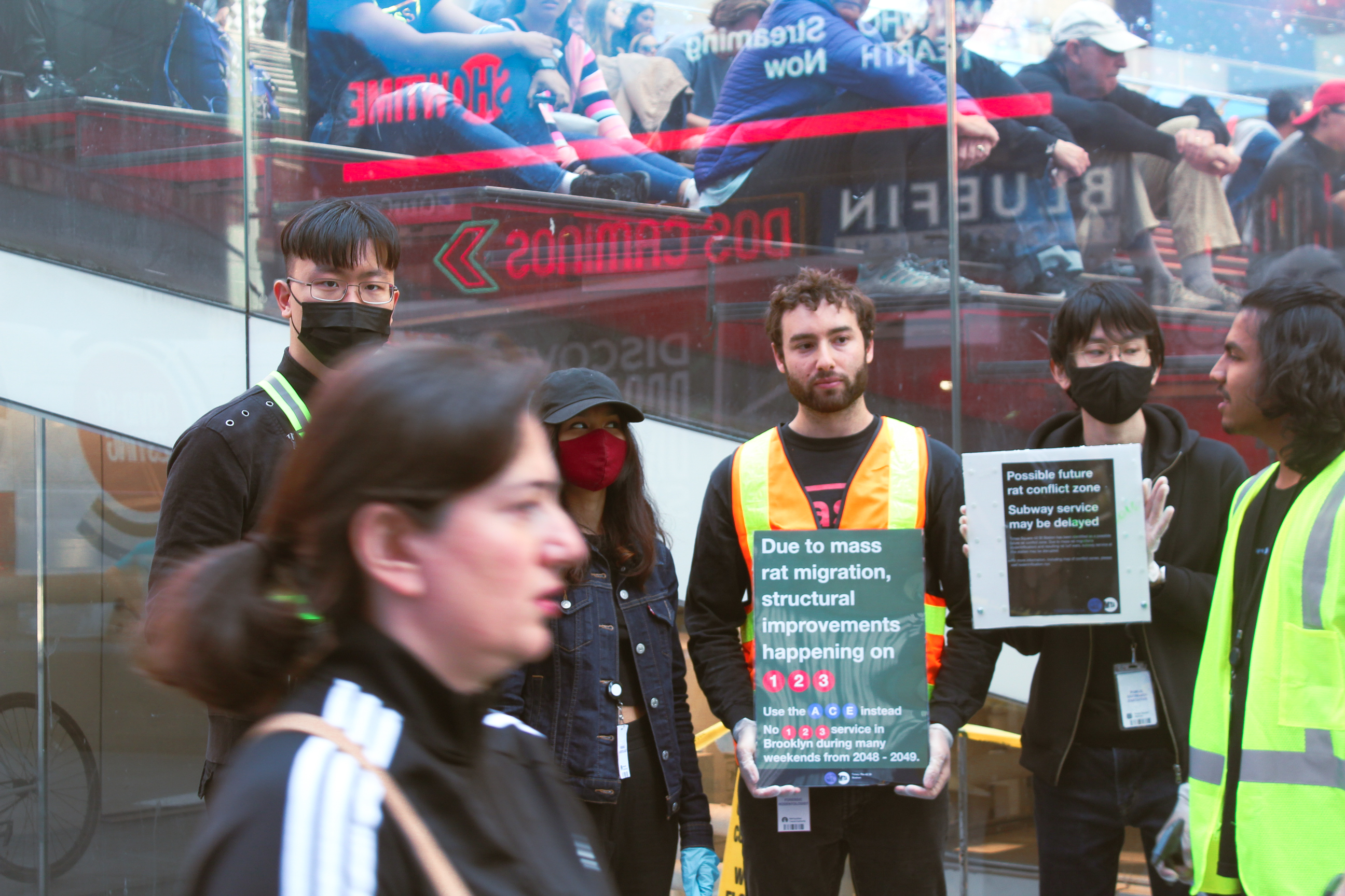 Collaborated with the Times Square Alliance to create provocations for unimagined futures for the world famous city block. Reflecting on existing social, technological, ecological, and political signals, a live scene was choreographed on site to encourage public engagement with speculative thought.